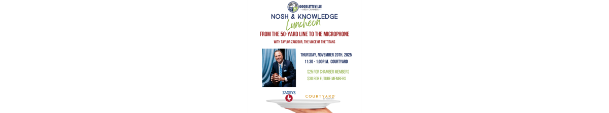 Nosh & Knowledge Luncheon: "From the 50 yard line, to the Microphone" with Taylor Zarzour: Voice of the Titans.